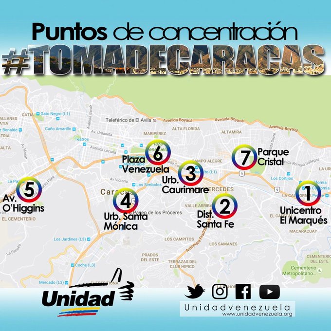 La Mesa de la Unidad Democrática rechazó las detenciones arbitrarias en contra de los dirigentes del partido político opositor Voluntad Popular e informó los puntos de concentración para la “Toma de Caracas”, protesta cívica y pacífica a realizarse este primero de septiembre.